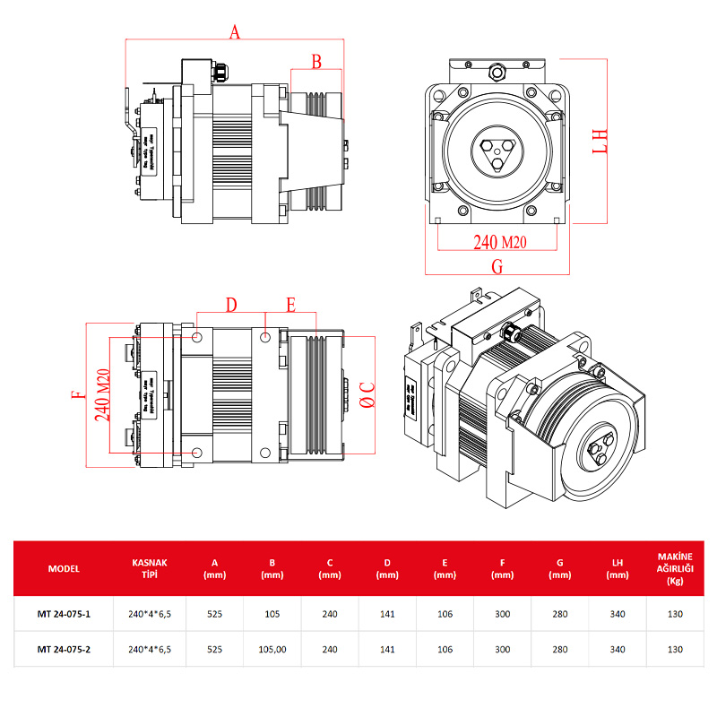 Die mt-24-75 Fangvorrichtung ist eine sicherheitskritische Komponente zum Schutz von Passagieren und Aufzugsanlagen in Notfallsituationen. Nach strengsten europäischen Sicherheitsnormen gefertigt, gewährleistet diese Komponente durch hochwertige Materialien und Präzisionstechnik zuverlässigen Schutz über die gesamte Lebensdauer der Aufzugsanlage. Technische Werte: MODEL: MT 24-075-1, HIZ (m/s): 1,00, GÜÇ (KW): 2,3, KAPASİTE (Kg): 320. Diese Fangvorrichtung löst unter Notfallbedingungen sofort aus und stoppt die Kabine sicher. Ihr wartungsfreies Design und lange Serviceintervalle senken die Betriebskosten. Die mt-24-75 ist kompatibel mit verschiedenen Schienenprofilen und Aufzugsgeschwindigkeiten und eignet sich sowohl für Neuinstallationen als auch für Sicherheitsupgrades bestehender Anlagen. Technische Daten: • MODEL: MT 24-075-1 • HIZ (m/s): 1,00 • GÜÇ (KW): 2,3 • KAPASİTE (Kg): 320 • KASNAK ÖLÇÜLERİ (mm): Ø240x4x6,5mm • DEVİR (RPM): 160 • STATİC LOAD STATİK YÜK (kg): 5000 • AKIM (A): 7,5 • TORK (Nm): 140 • FREN TORKU (Nm): 2*360 • FREKANS (Hz): 20 Pole 26,6 Hz • SEYİR MESAFESİ (m): 21 • SUSPENSİON TYPE ASKI TİPİ: 2:1 • MAKİNE AĞIRLIĞI (Kg): 130 • MODEL: MT 24-075-2 • HIZ (m/s): 1,00 • GÜÇ (KW): 3,3 • KAPASİTE (Kg): 480 • KASNAK ÖLÇÜLERİ (mm): Ø240x4x6,5mm • DEVİR (RPM): 160 • STATİC LOAD STATİK YÜK (kg): 5000 • AKIM (A): 11 • TORK (Nm): 200 • FREN TORKU (Nm): 2*360 • FREKANS (Hz): 20 Pole 26,6 Hz • SEYİR MESAFESİ (m): 21 • SUSPENSİON TYPE ASKI TİPİ: 2:1 • MAKİNE AĞIRLIĞI (Kg): 130 Dieses Produkt wird in der Türkei hergestellt gemäß der EN 81-20/50 Europäische Aufzugssicherheitsrichtlinie mit CE-Zertifizierung hergestellt. Geeignet für Neuinstallationen und Modernisierung. Unser Logistiknetzwerk mit Sitz in Istanbul, Türkei gewährleistet schnelle Lieferung nach Deutschland, Österreich, die Schweiz, die Türkei, die Niederlande und weltweit. Verfügbar mit wettbewerbsfähige Großhandelspreise und flexible Zahlungsbedingungen. Groß- und Einzelhandelsbestellung möglich. Alle Produkte tragen das CE-Konformitätszeichen der Europäischen Union und werden gemäß EN 81-20 und EN 81-50 hergestellt. Wir bieten 24/7 technischen Support, Installationsanleitungen und umfassenden Garantieservice. Projektbezogene technische Beratung und Sonderpreise für Großbestellungen auf Anfrage.