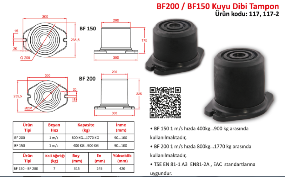 Die BF-200 Aufzugspuffer ist eine sicherheitskritische Komponente zum Schutz von Passagieren und Aufzugsanlagen in Notfallsituationen. Nach strengsten europäischen Sicherheitsnormen gefertigt, gewährleistet diese Komponente durch hochwertige Materialien und Präzisionstechnik zuverlässigen Schutz über die gesamte Lebensdauer der Aufzugsanlage. Diese Aufzugspuffer löst unter Notfallbedingungen sofort aus und stoppt die Kabine sicher. Ihr wartungsfreies Design und lange Serviceintervalle senken die Betriebskosten. Die BF-200 ist kompatibel mit verschiedenen Schienenprofilen und Aufzugsgeschwindigkeiten und eignet sich sowohl für Neuinstallationen als auch für Sicherheitsupgrades bestehender Anlagen. Dieses Produkt wird in der Türkei hergestellt gemäß der EN 81-20/50 Europäische Aufzugssicherheitsrichtlinie mit CE-Zertifizierung hergestellt. Geeignet für Neuinstallationen und Modernisierung. Unser Logistiknetzwerk mit Sitz in Istanbul, Türkei gewährleistet schnelle Lieferung nach Deutschland, Österreich, die Schweiz, die Türkei, die Niederlande und weltweit. Verfügbar mit wettbewerbsfähige Großhandelspreise und flexible Zahlungsbedingungen. Groß- und Einzelhandelsbestellung möglich. Alle Produkte tragen das CE-Konformitätszeichen der Europäischen Union und werden gemäß EN 81-20 und EN 81-50 hergestellt. Wir bieten 24/7 technischen Support, Installationsanleitungen und umfassenden Garantieservice. Projektbezogene technische Beratung und Sonderpreise für Großbestellungen auf Anfrage.