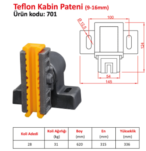 Teflon 5 mm L Tipi asansör karşı ağırlık pateni, teflon (PTFE) temaslı yatağıyla kılavuz ray üzerinde düşük sürtünmeli kılavuzlama sağlayan karşı ağırlık kılavuz elemanıdır.