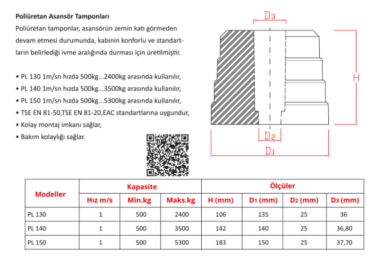 Asansör Tamponlar ONPT-03 Asansör Tampon