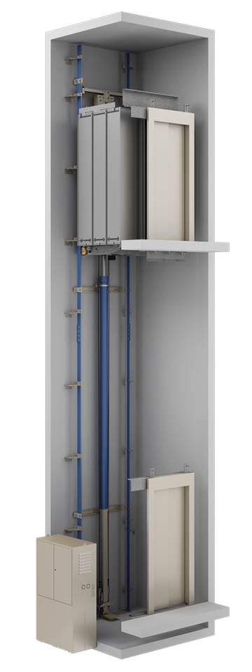 FlexyLIFT R indirect acting hydraulic lift is ideal for existing or new residential buildings that have pit and headroom limitations.